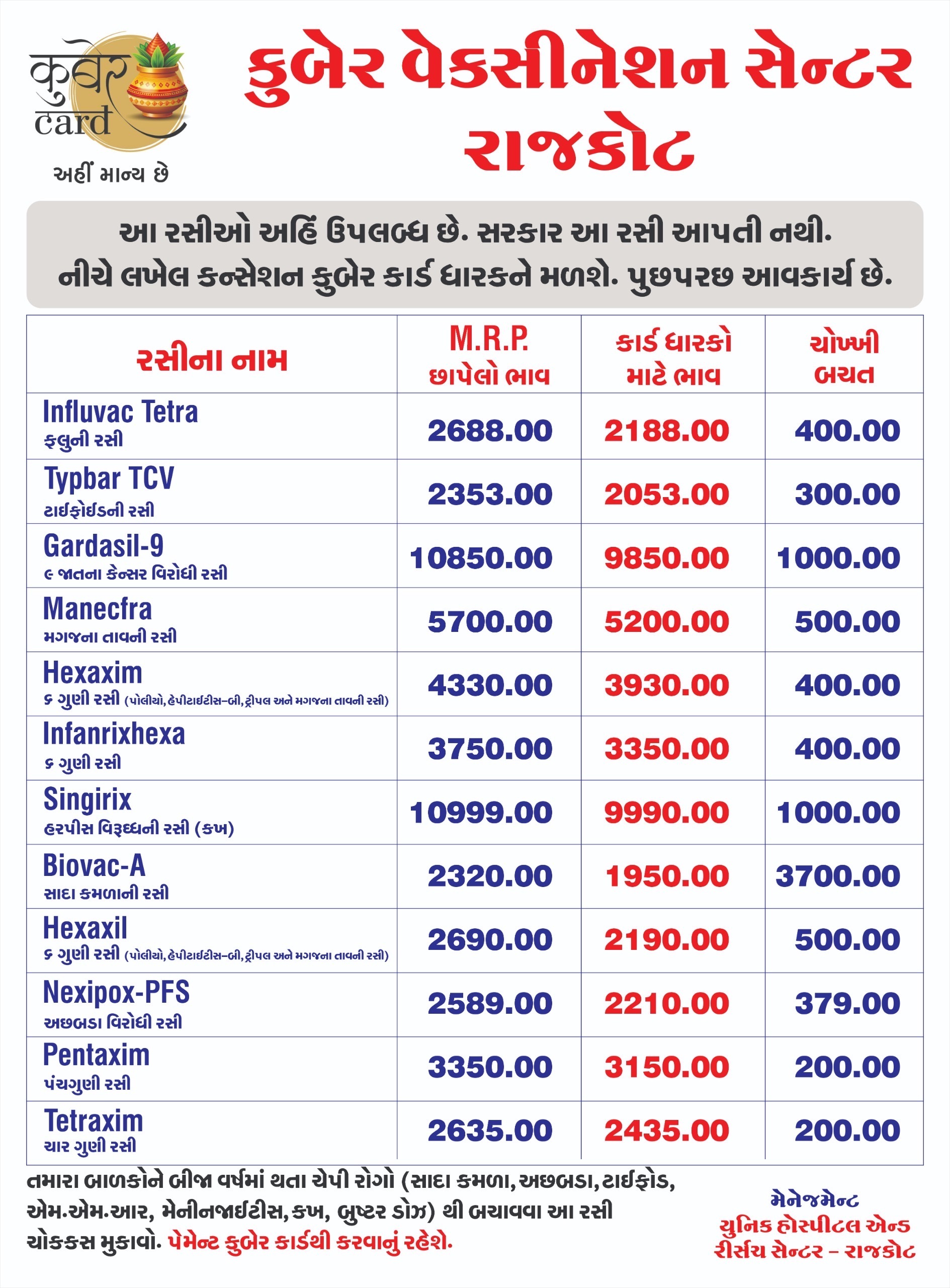 Save on child and adult paid vaccines.